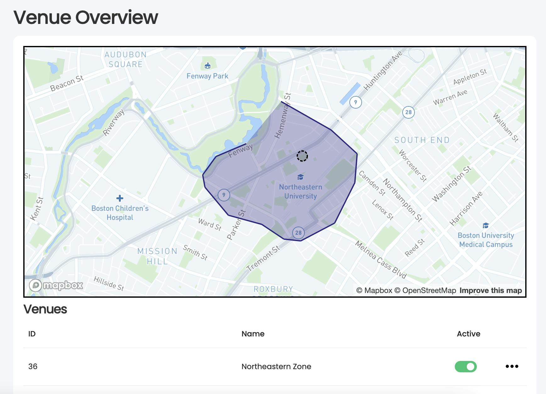 If the rider requests to be dropped off within a venue, they will also be alerted prior to putting in their request. When they are dropped off, they may have to walk a bit to get to their final destination. Fleet managers can create venues easily via our dashboard. Using the dashboard, managers can draw the venue location on a map and set the pickup/dropoff point.